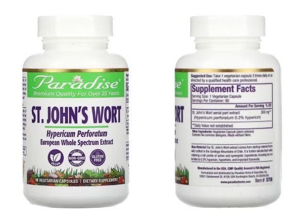 다섯번째는 Paradise Herbs, 세인트 존스 워트, 베지 캡슐 90정입니다.