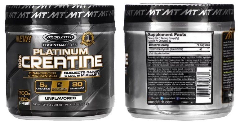 - MuscleTech, 에센셜 시리즈, 플래티넘 100% 크레아틴, 무맛, 400g(14.11oz)